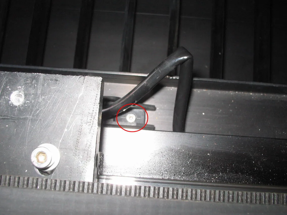 ※ X軸レールが奥の方にあると作業ができないので、手で引いて移動させてください。メインスイッチがOFFの場合は容易に動かすことができます。