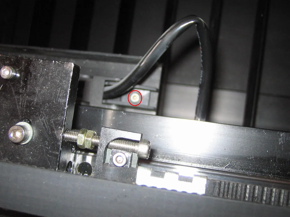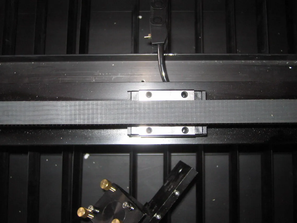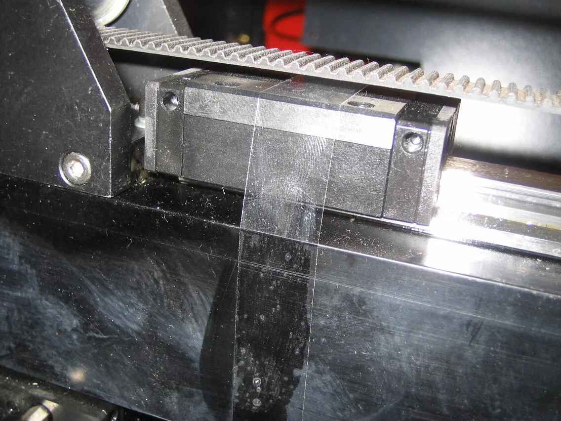 レーザーヘッドを外した稼動部は、正面から向かって最も左の位置まで移動させ、テープなどで貼り付けて固定して、動かないようにします。