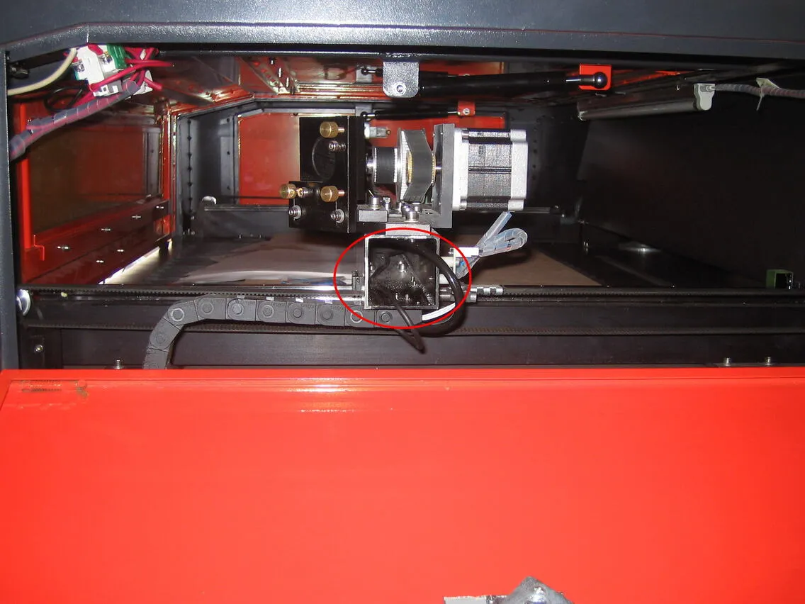 正面から向かって右側にあるレーザーヘッドのチェーンを交換します。