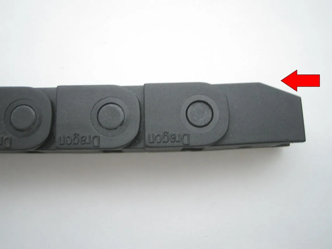 初めてシングルヘッド用チェーンを使用する際には、駒の向きが逆の場合があります。その際は、マイナスドライバーなどで勘合部を開いて駒をはずし、逆にして取り付けてください。端の駒は外側で嵌め合うようになります。